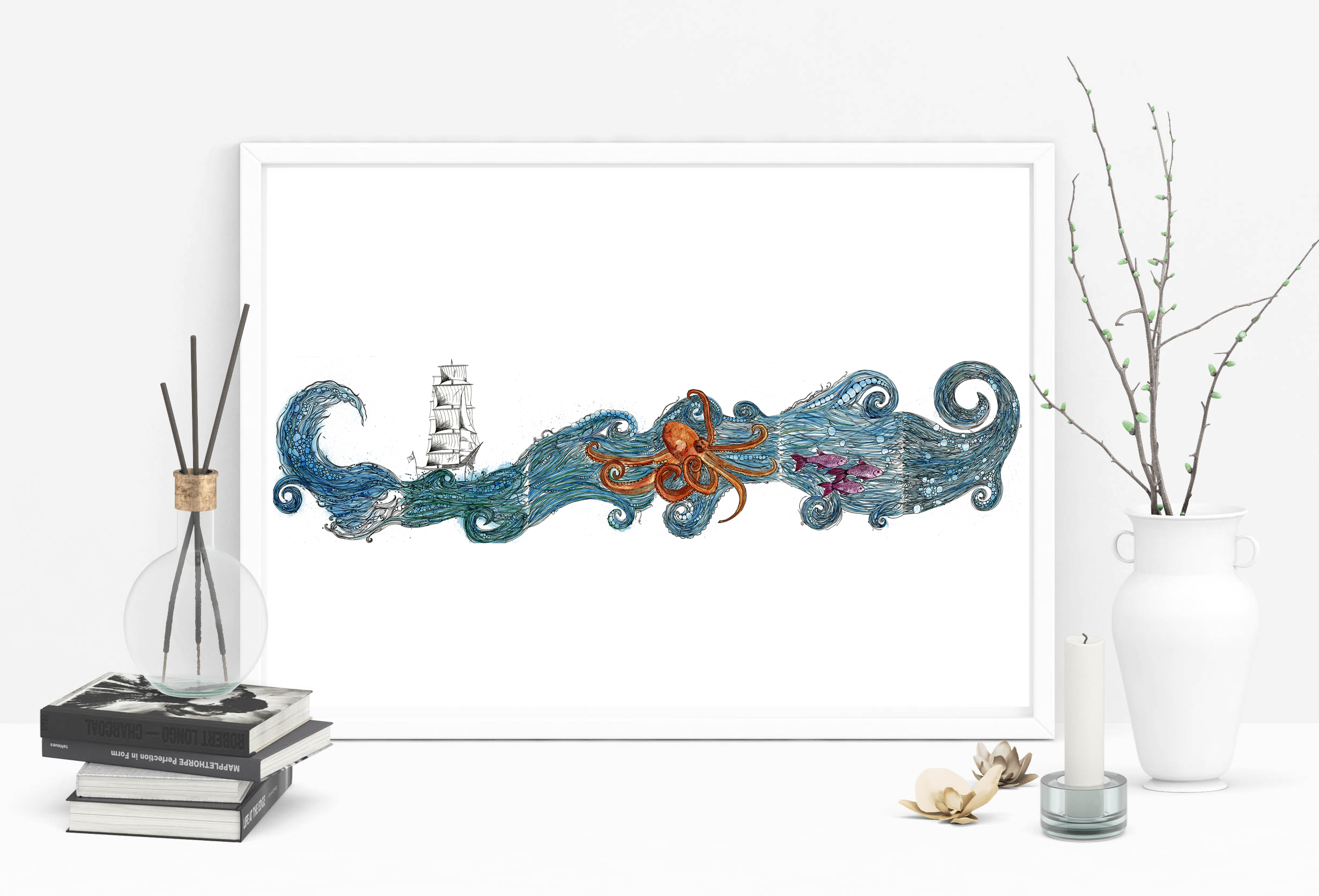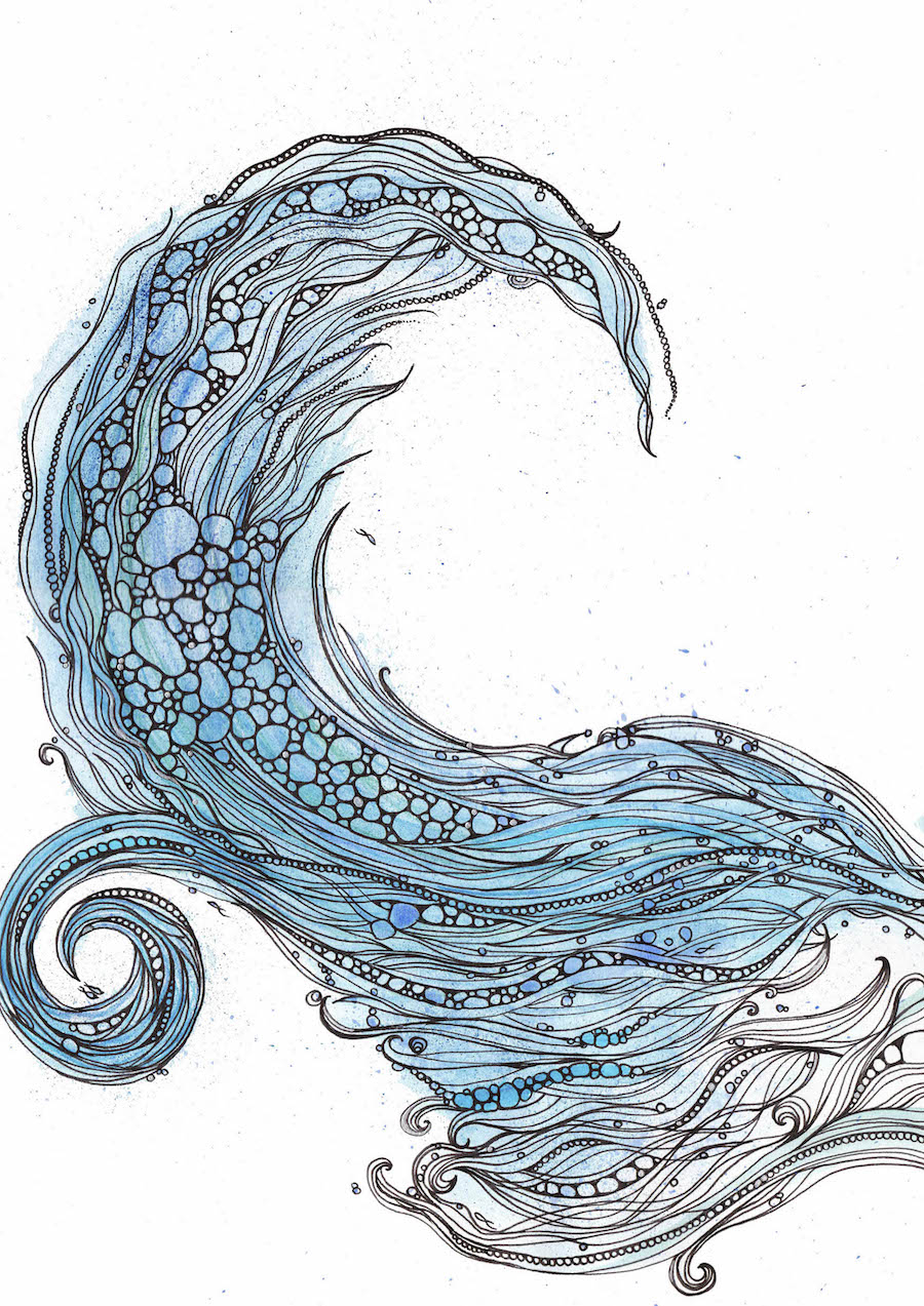 I also like to travel and have lived in many different places, including Australia and the Scilly Isles. I often get my inspiration from the natural environment and animals as well as books. I like to try out different media and have recently been experimenting with water colour, fine line pens, and marbling.
