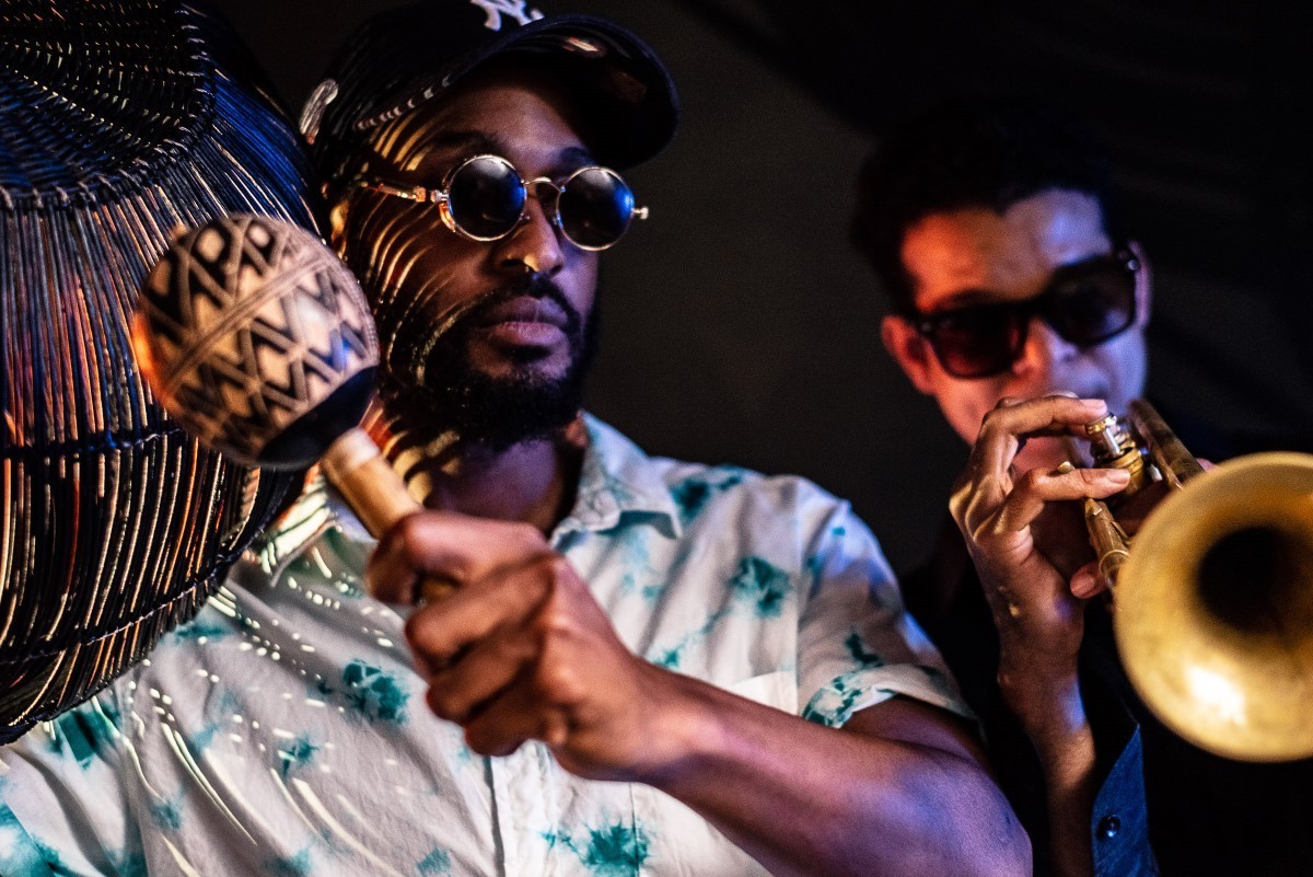 Aquiles Navarro was born in Toronto during a time of great, political upheaval in his family’s native home of Panama. Dangers surrounding the reign of Manuel Noriega and the subsequent U.S. invasion of 1989 prompted the Navarro family’s exit, returning years later to Panama City in 1997. Latin folkloric music was fastened deeply to the family paradigm. After studying with Panamanian trumpeter Victor “Vitin” Paz (Fania All-Stars) and Panamanian-American composer/saxophonist Carlos Garnett (Miles Davis, Pharoah Sanders), Navarro moved to Boston to study at the New England Conservatory (NEC). Before the semester had even begun, a friendship had kindled between him and another incoming new student, Tcheser Holmes. Since a young age, Tcheser Holmes naturally wove into the fabric of a tight-knit Pan-African community in Brooklyn centered around the spiritual organization, Ausar Auset Society, and his family’s dance company, The Bennu Ausar Dancers. Encouraged by his mother who operates the cultural arts program at Kamit Preparatory Institute, and his uncle, a classically trained pianist from Panama, as a teenager Holmes enrolled in the Manhattan School of Music’s Precollege for pre-conservatory training and eventually made his way toward NEC.