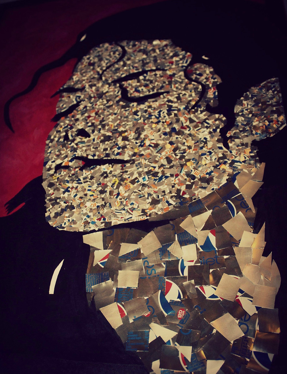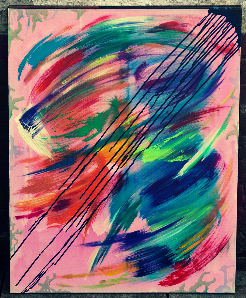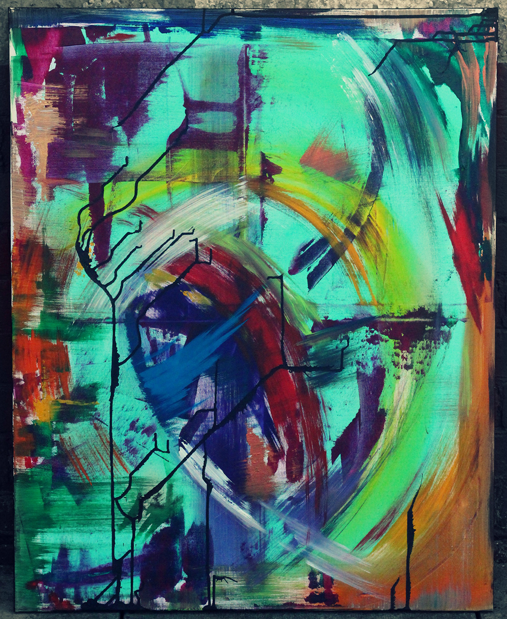 Originally McEnroe started to turn heads with his unique modern industrial style & very original and innovative use of recycled aluminium cans. Creating many animal studies, iconic pop idol figures of years gone by like a who’s who of musics hall of fame. One for pushing his boundaries and comfort zones with what he calls his ‘color motion studies’ in which you will not find a fixed structures only mesmerizing textures & striking colour. Leaving chaotic, emotive, vivid shapes strokes, pokes, scrapes scuffs on his works made by a manner of tools, from pens & broken glass to broad flat brushes.