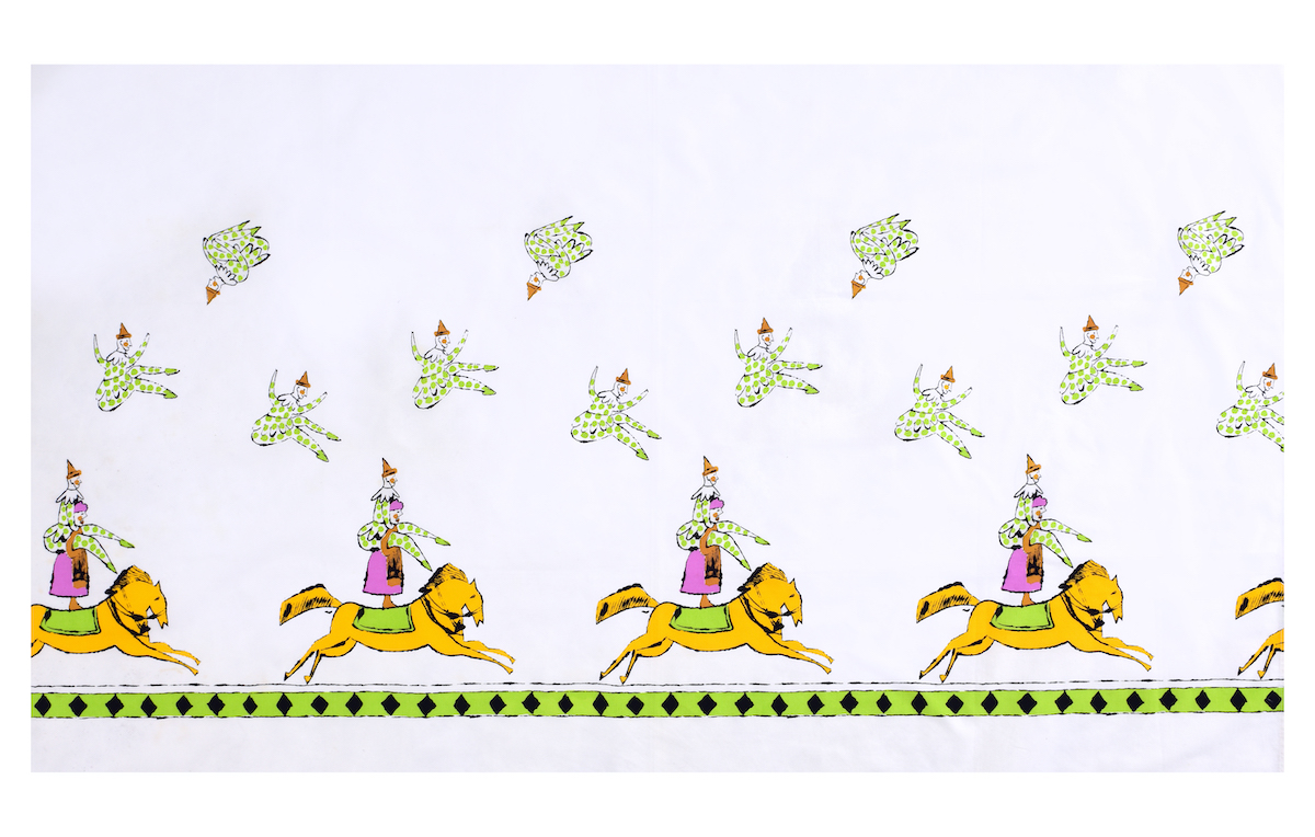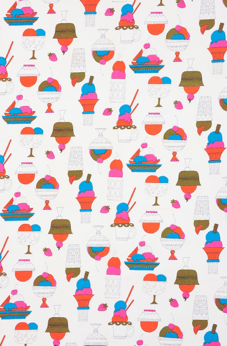 Warhol’s textiles are full of playful food designs from lemons to candy apples to pretzels. One of the most inventive projects on display will be his designs for legendary New York café Serenditpity3, which Warhol was a frequent visitor to. Inspired by the ice cream desserts at the café, Warhol created an homage of playful food designs that will be displayed in the exhibition. The Dovecot café will be redesigned in honour of Warhol’s Serendipity3-inspired works, enhancing the exhibition experience.