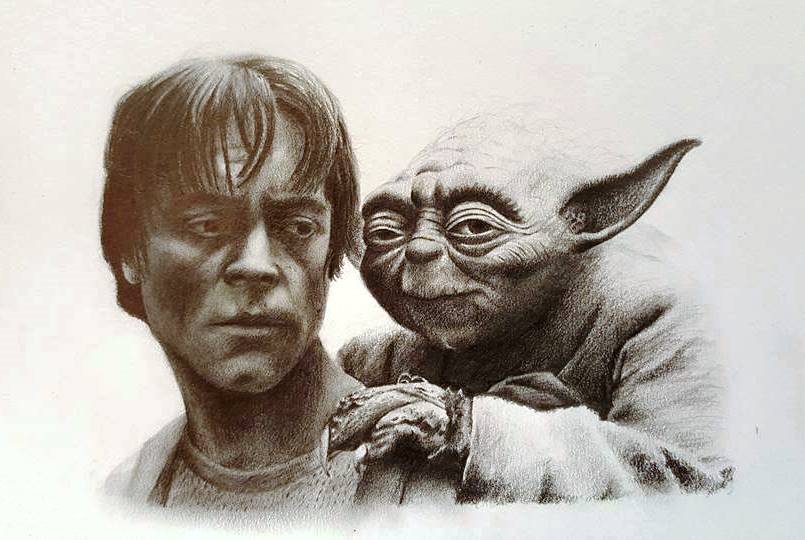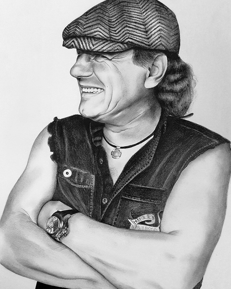 I try to capture not only the features but the emotions of the subjects. My most recent work involves merging music and film stars into the same piece which has proved very popular. -Dave Bostock