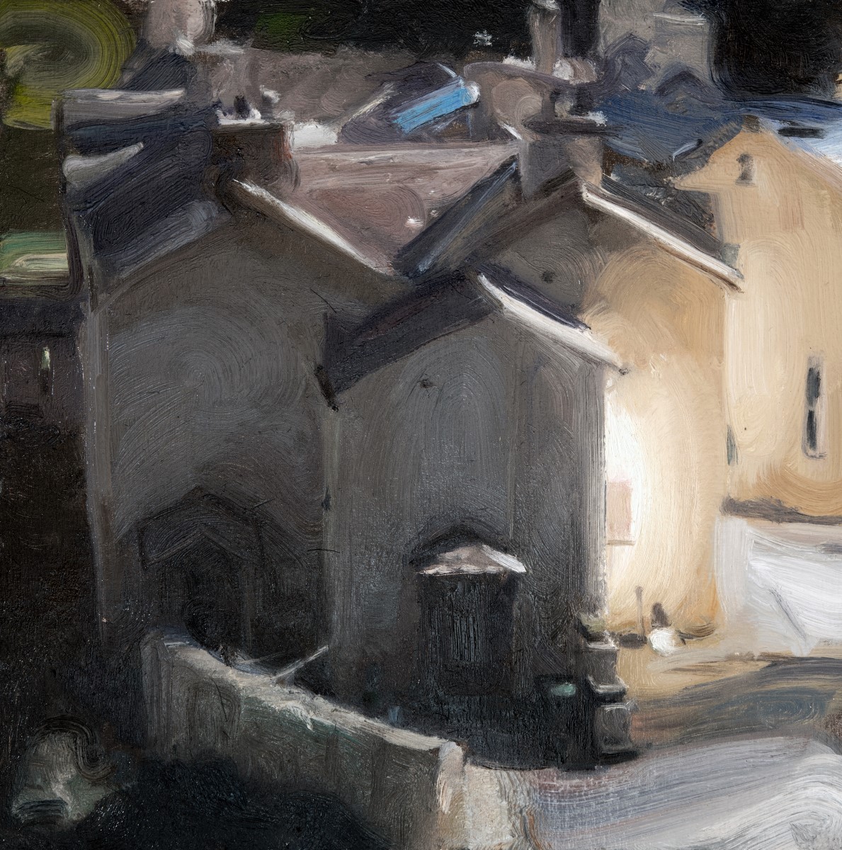 Included in the exhibition are scenes of Sweden, where he visits often, although the majority of the works feature the townscape and countryside of Kirkcudbright, where McClure’s practice has most recently developed as artist in residence; he has immersed himself in this harbour town that has been a wellspring of Scottish art since the 1880s. McClure embraces this history with his studio still lined with Hornel’s work in gilt frames and his own new paintings spread out beneath, conversing across a chasm of time whilst also influenced by Charles Oppenheimer and Peploe. Despite this great kinship, McClure is his own painter, and the driving force of his practice is his own power of observation.