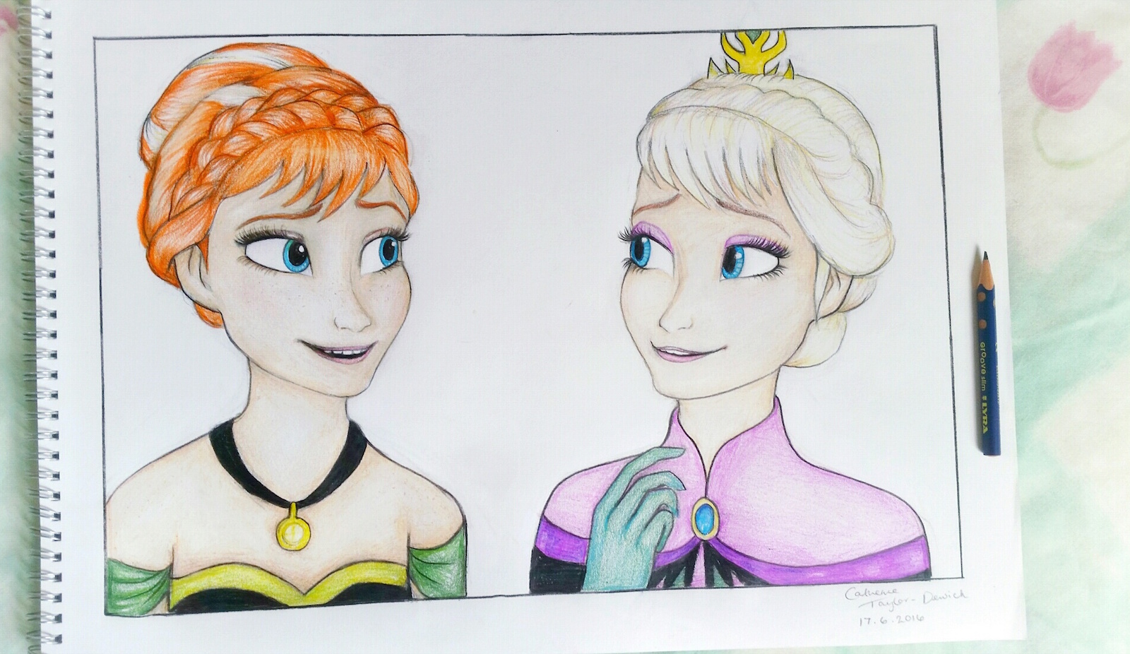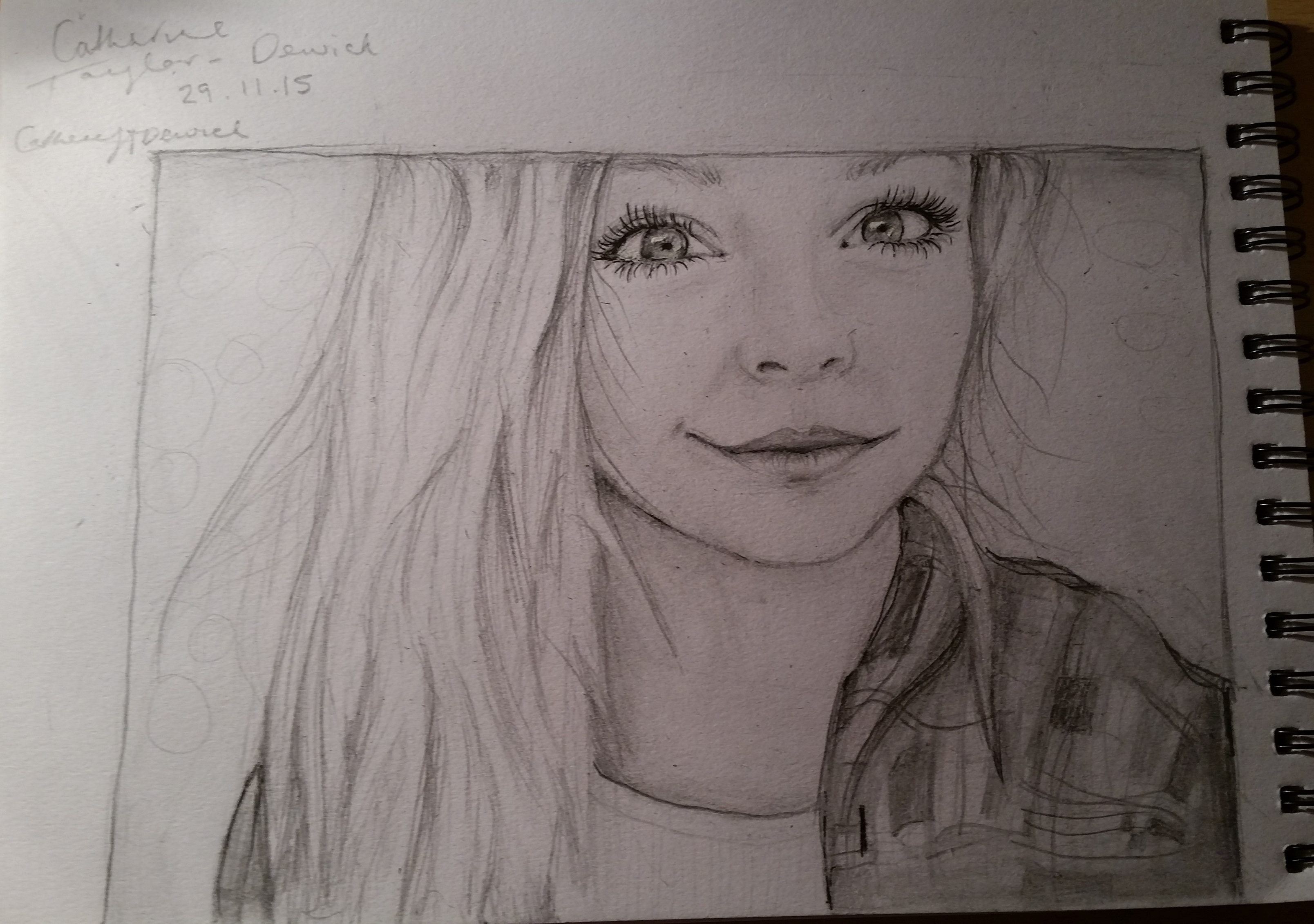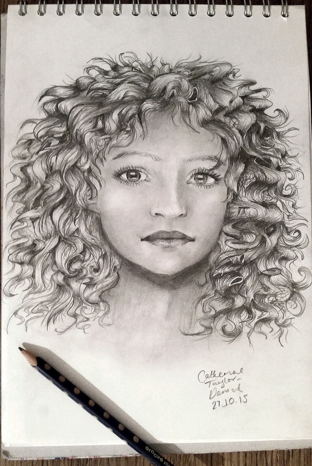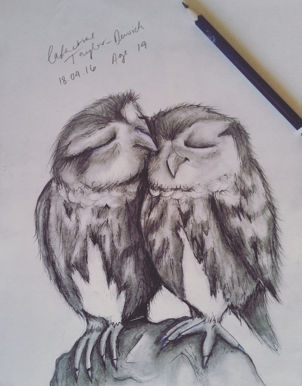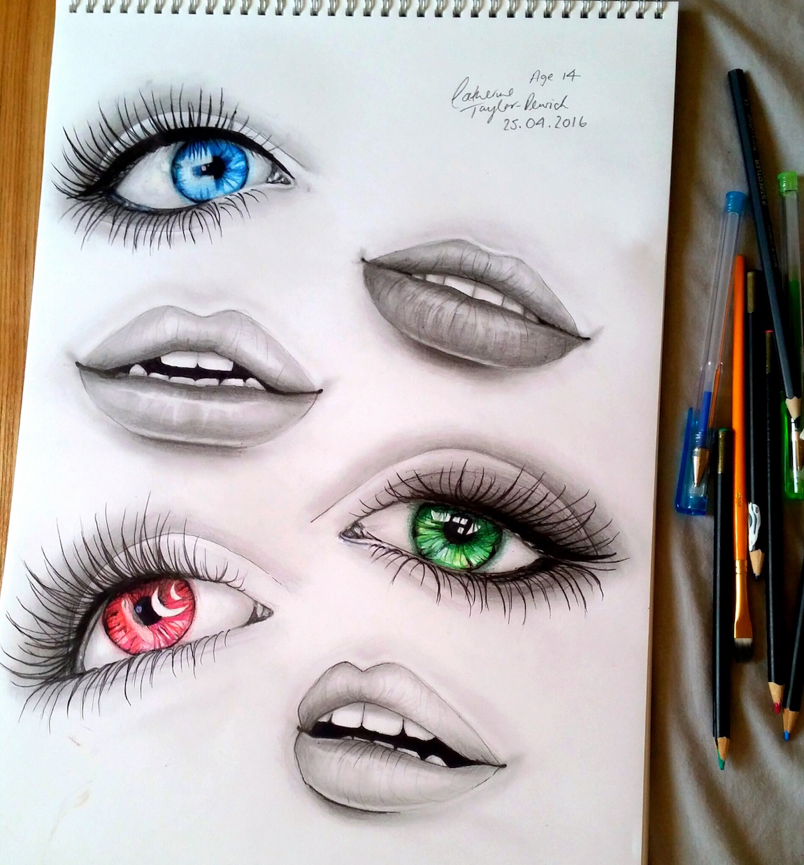 I have different styles of drawing techniques, but I usually always draw in pencil, and I have a passion for drawing eyes as I think that’s what I can draw best. My main focus to improve on in art is spray paint, as that’s my favourite style. I have a couple other interests which are piano and guitar, and I’ve been playing both for a couple years. I am hoping to pursue a career in art in future years. – Catherine Dewick