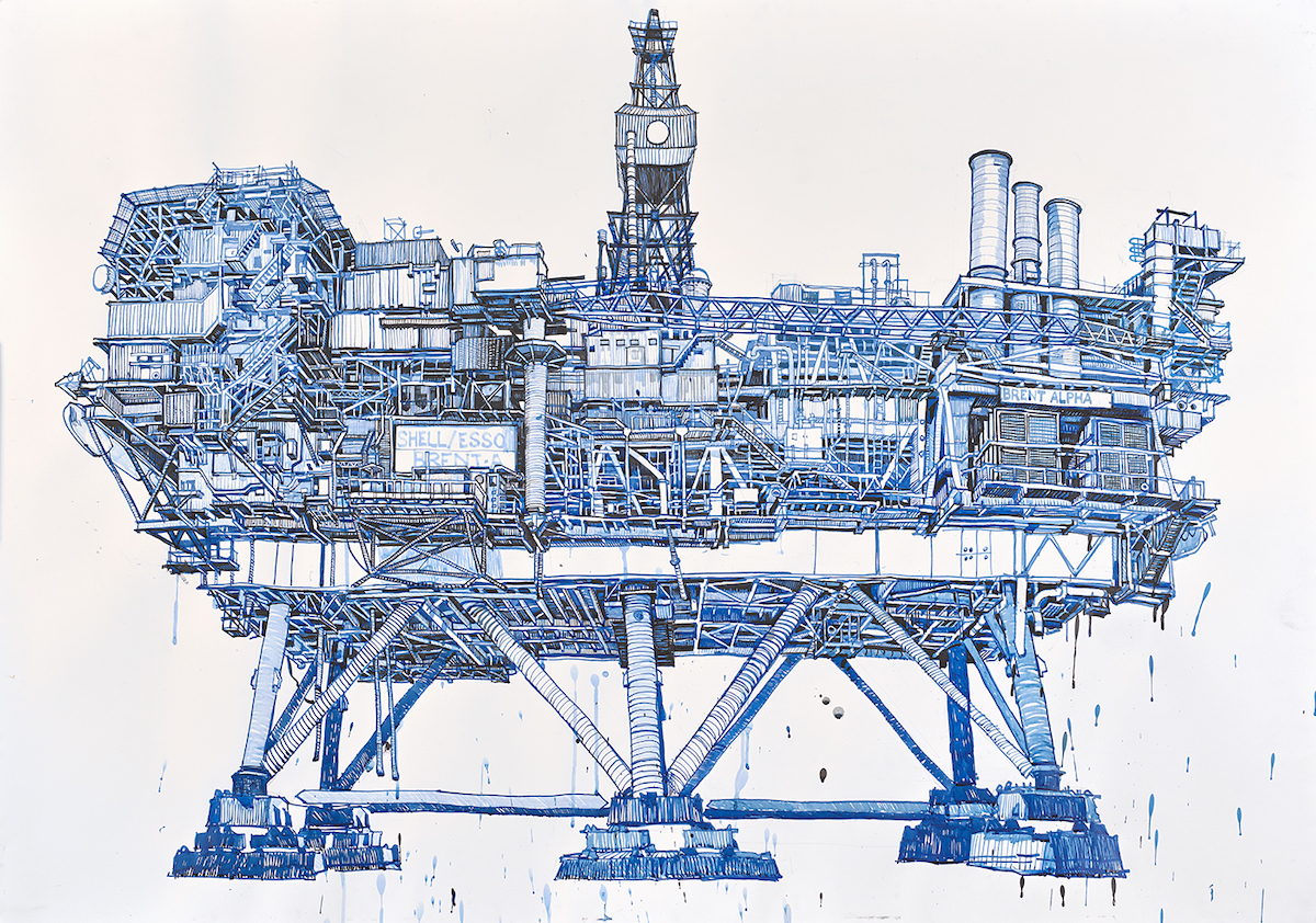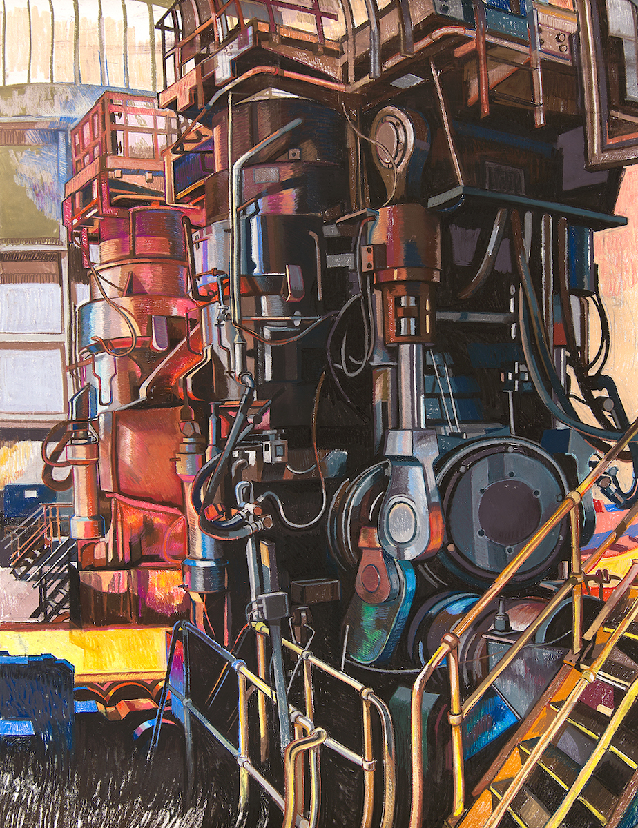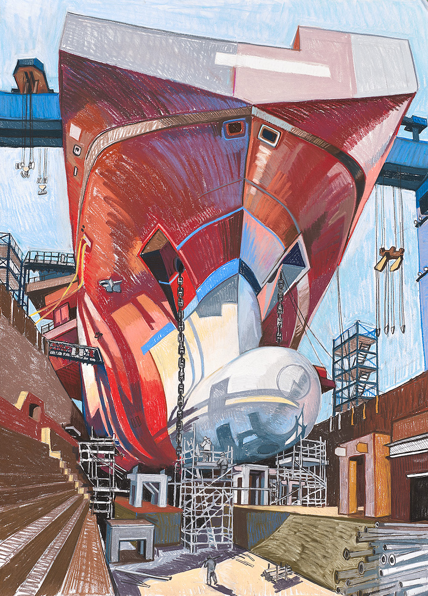 I’ve always been fascinated by industry as a painting subject. Growing up in Glasgow in the 1980s, my father described the days when the River Clyde bustled with ships and shipbuilding. But when I went to see for myself, the River was all but silent. So I began to draw the archaeology of a dying industrial landscape along the Clyde, desperate to re-capture what I had missed.
