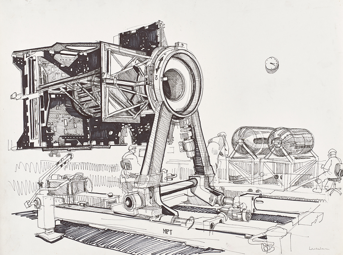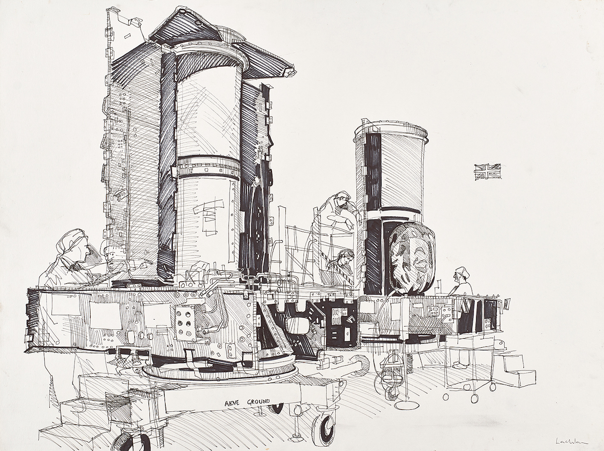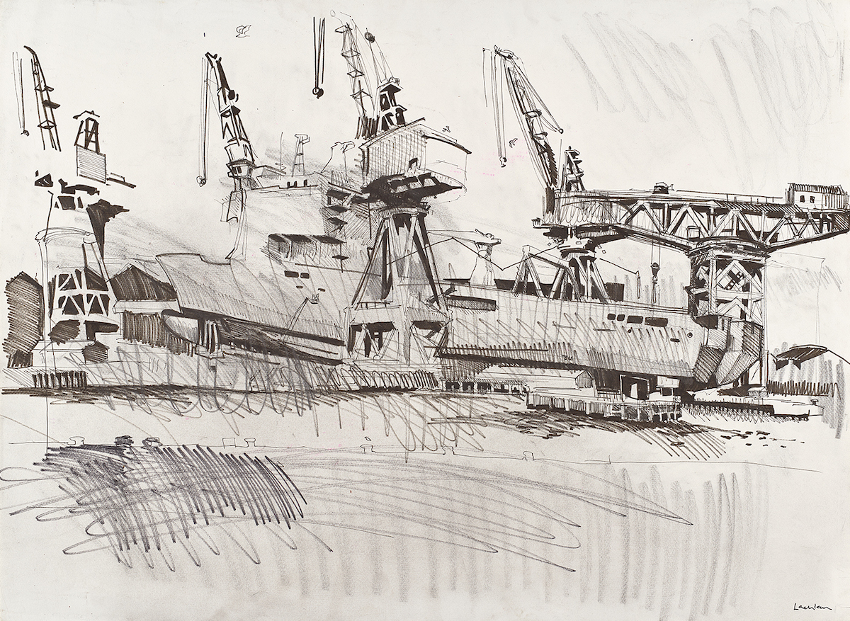 For over 15 years Lachlan Goudie has been drawing and painting in extraordinary industrial locations across the United Kingdom. From shipyards on the River Clyde, to blast furnaces in Wales and high-tech Satellite manufacturing laboratories in Portsmouth, he has found creative inspiration in the unlikeliest of studios.
