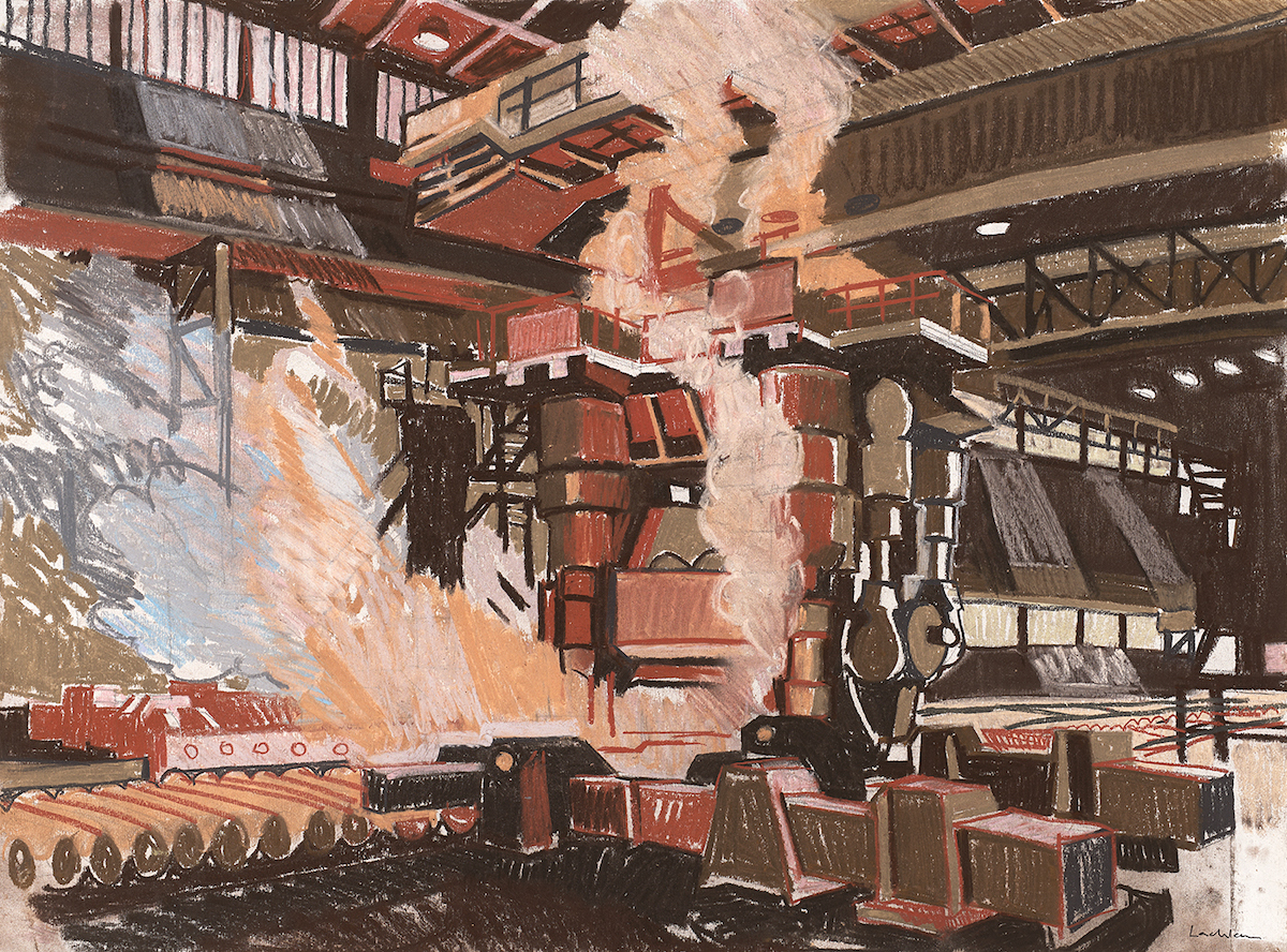 Over the years these visits to engineering sites, factories, harboursides and mines have enabled him to produce hundreds of drawings, paintings and prints. When viewed together these images constitute an unusual archive; a picture history of modern British industry. A story of national achievement, pride and technological innovation.