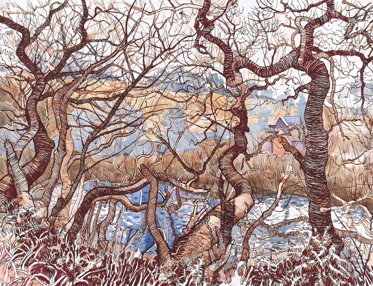 As an artist, however, I find both subjects equally compelling. And through the course of my work I have discovered that natural and industrial landscapes share certain characteristics. Sublime scale and intricacy are unexpected components of both environments. ‘From the Forest to the Forge’ will include many works inspired by woods, trees, and the wonders of natural engineering.