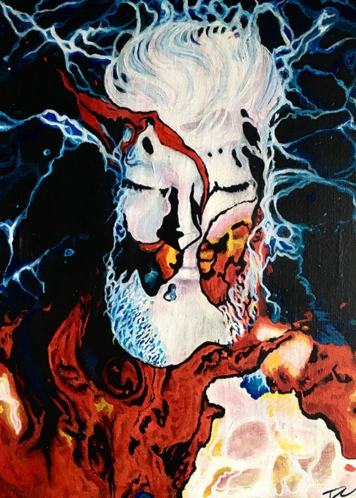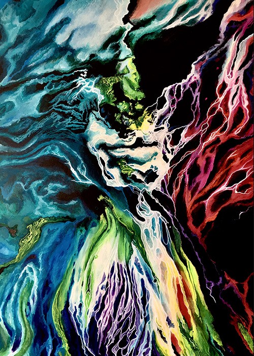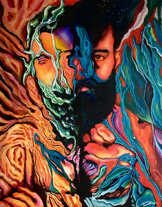 Each painting is a personal journey that is created to share and connect with the public. I base most of my symbolism on spirituality, metaphysics, and mythology to expresses inner thoughts of identity and psychology with dream-like effects. Each of us is blinded by the materialistic world of the 21st century.
