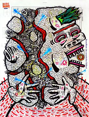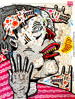 My research focuses on deep politics and the use of the mass media for the control of society. Although my work is multidisciplinary, I´m specialized in drawing, through mixed media, marker and recycled and industrial papers. My style moves between street art, illustration, underground comics and collage.