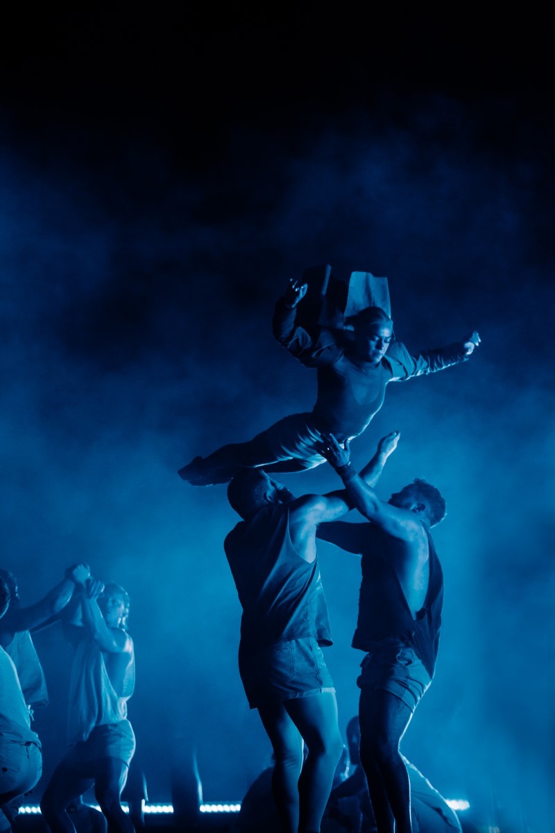 MACRO, a co-production between Edinburgh International Festival and Adelaide Festival, featured Australian circus legends Gravity & Other Myths, First Nations dance group and internet sensation Djuki Mala and a group of Australian and Scottish musicians performing original music, including Aidan O’Rourke (fiddle), Lauren Maccoll (fiddle), Kathleen MacInnes and Ekrem Eli Phoenix (vocals), Duncan Strachan (cello) and Brighde Chaimbeul (pipes) with National Youth Choir of Scotland and spoken word from Edinburgh Makar, poet and author Hannah Lavery. Macro was supported by EventScotland and Scottish Government’s Platforms for Creative Excellence Resilience Fund and presented as part of the UK/Australia Season 2021-22 and in collaboration with Scottish Rugby.