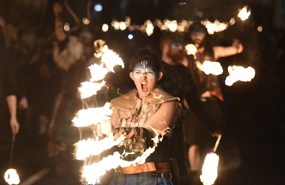 Families, friends, residents and visitors from 49 countries marched alongside pipe, drum and dance bands from across Scotland, including Edinburgh Samba Band, Glencorse Pipe Band and Hawick Scout Pipe Band generating a blistering beat to accompany the blazing Procession. Leading the charge this year was a 40 strong cast from Scotland’s pioneering Celtic Fire Theatre company, PyroCeltica who’s Highland Warriors showcased a dazzling array of fire skills featuring fire fans, huge flaming claymores and fire staffs, set to the booming beats of the Harbinger Drummers.