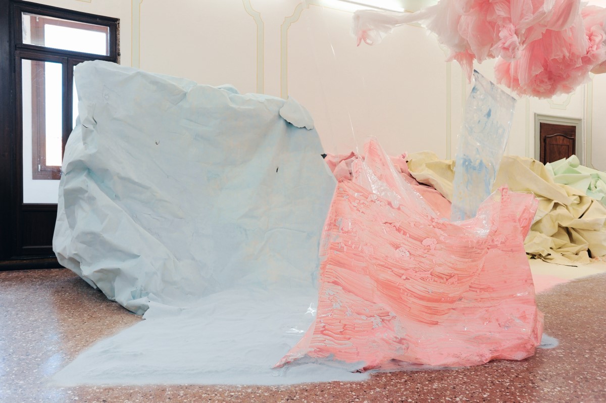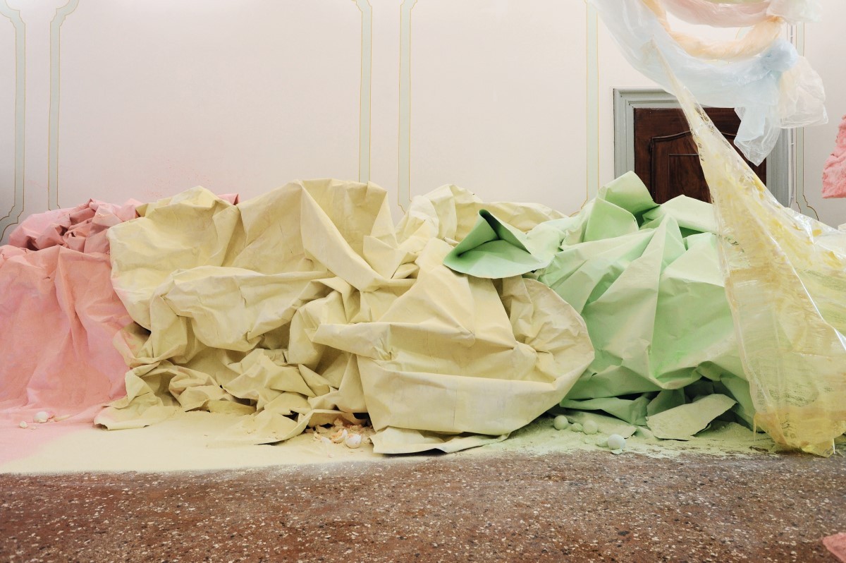 The newly developed Fruitmarket presents Karla Black: Sculptures (2001¬–2021). Scottish artist Karla Black was invited to be the first to show in both the exhibition galleries and the brand-new warehouse space of the redeveloped Fruitmarket. The new exhibition is an attempt to redefine the traditional retrospective or survey show and it combines existing and new work, and is the result of an invitation to Black to play to her strengths and “force a raw creative moment” into the Fruitmarket’s pristine new gallery spaces.