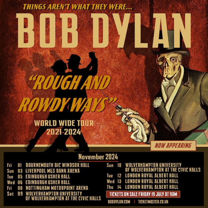 The Rough and Rowdy Ways tour will also see Bob Dylan’s return to Edinburgh concert since 2009, plus returns to Nottingham and Liverpool. The tour also includes a visit to the newly refurbished Civic Hall in Wolverhampton – a venue which has played host to the biggest musical artists of all time from Bob Marley to The Who to David Bowie. Bob Dylan’s stage time for each of these shows will be 7.30pm, with the exception of London’s Royal Albert Hall where he will take to the stage at 8.00pm. Full tour dates below.