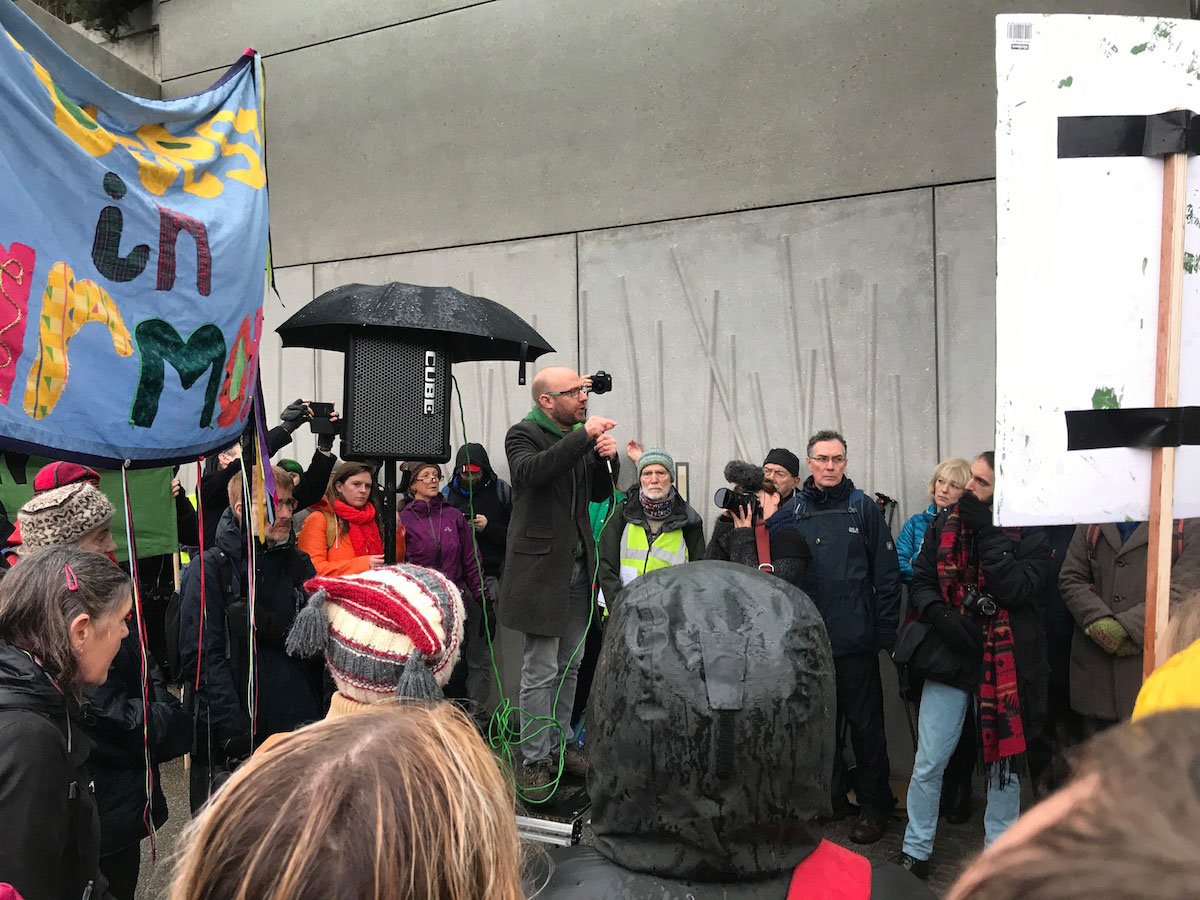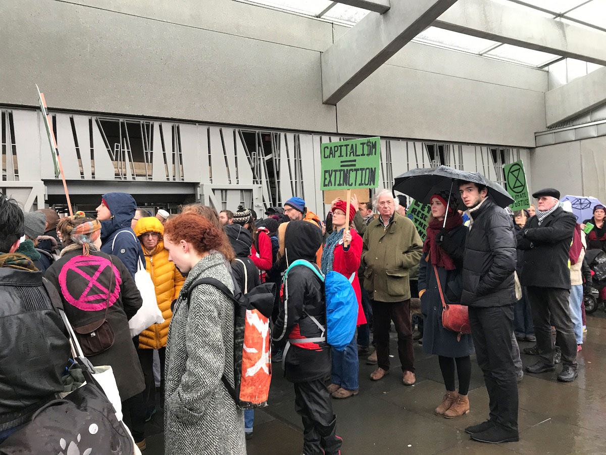 In a stimulating discussion after the Declaration of Rebellion outside the Scottish Parliament on Saturday 24th, it was recognised that sufficient change will not come from the top down. “The mainstream climate movements continue to ask politely for gradual policy tweaks. It’s time to recognize that this approach has failed.” One of XR organisers explained to me that “the Scottish government is very good at framing themselves as world leaders on climate change” while they are still beholden to oil concerns and various unsavoury enterprises. “We’re calling them out!” he exclaimed. (Climate Action Scotland)
