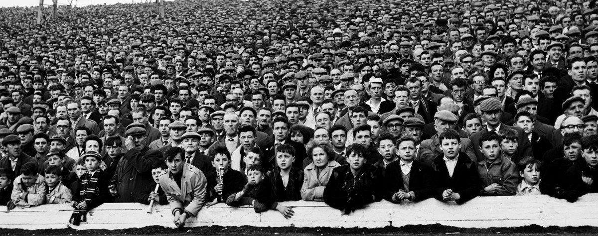 Marzaroli’s Glasgow is a city dominated by faces, characters and stories. Skylines and chimneys punctuate the work – they set the scene – but this is an exhibition about people and then place in that order. I guess what I mean is that we learn about Glasgow through the kids playing on the street, the ladies nattering on corners and the crowds watching football. It is rooted in the physicality of place and the prospect of the immediate nearby. Depicted ‘landscape’ is not the unifier here, the notion of shared space is. It would be twee indeed to return to the marketing mantra of ‘people make Glasgow’ but in this exhibition it appears to be true.