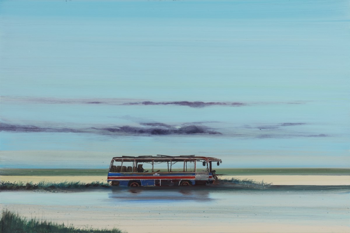 Over twenty large paintings will feature in Lost Boat Party, highlighting McFadyen’s understanding of the sublime landscape tradition. It is no accident that the artist was taught by a generation of abstract painters whose presence is felt in these paintings describing the contemporary world; paintings such as Mallaig and Estuary Music are almost minimalist, and all the paintings – save for one which has a tiny figure, difficult to find at only half an inch tall – are void of human presence, instead inviting the viewer to inhabit the haunting and occasionally hostile panoramas of land and sea before them.