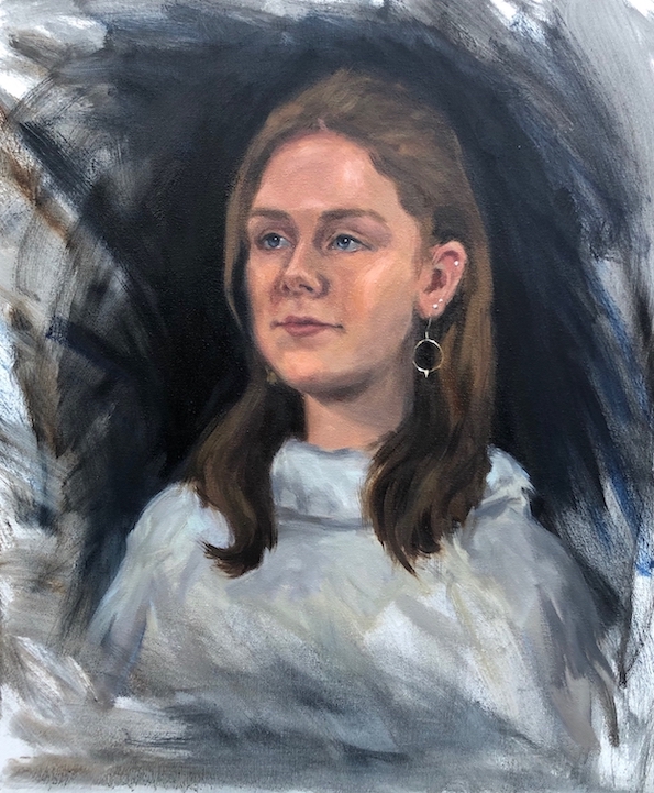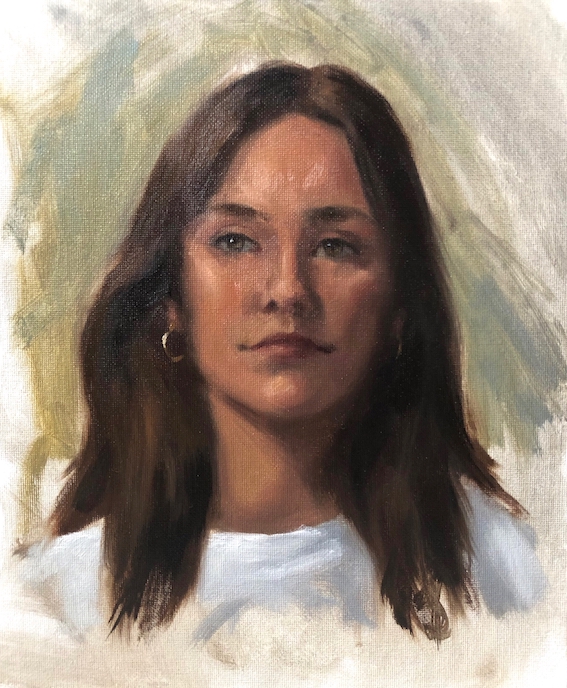 Inspired by portrait painters such as Sargent for his expressive use of paint and handling of temperatures, and Rembrandt due to his evocative use of chiaroscuro, she attempts to bring aspects of the great masters into her own work. Working largely from life Sophia is able to respond directly to the sitter, each sitting creating a closer likeness and sense of the sitters true personality and emotions. Recent work has included painting landscapes en plein air, which comes with equally exciting challenges of capturing the light on the landscape, adapting warm and cool tones and experimenting with different edges.