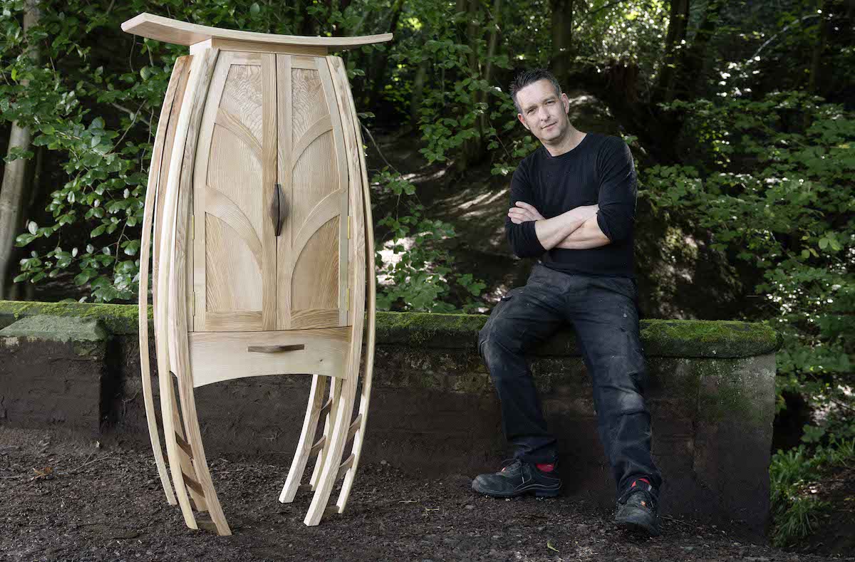 Tom Cooper has been designing and making furniture for over 20 years. His designs are characterised by a graceful, organic element, contrasted with geometric lines and subtle features in the form of contrasting timbers and exposed joint details. For Ash Rise Tom is drawing inspiration from the forms seen in the seeds and leaves of beautiful Scottish ash trees, to create the Emergence Cabinet. The cabinet seeks to symbolise a sense of rising ascension from the disease and decay of the ash dieback epidemic.
