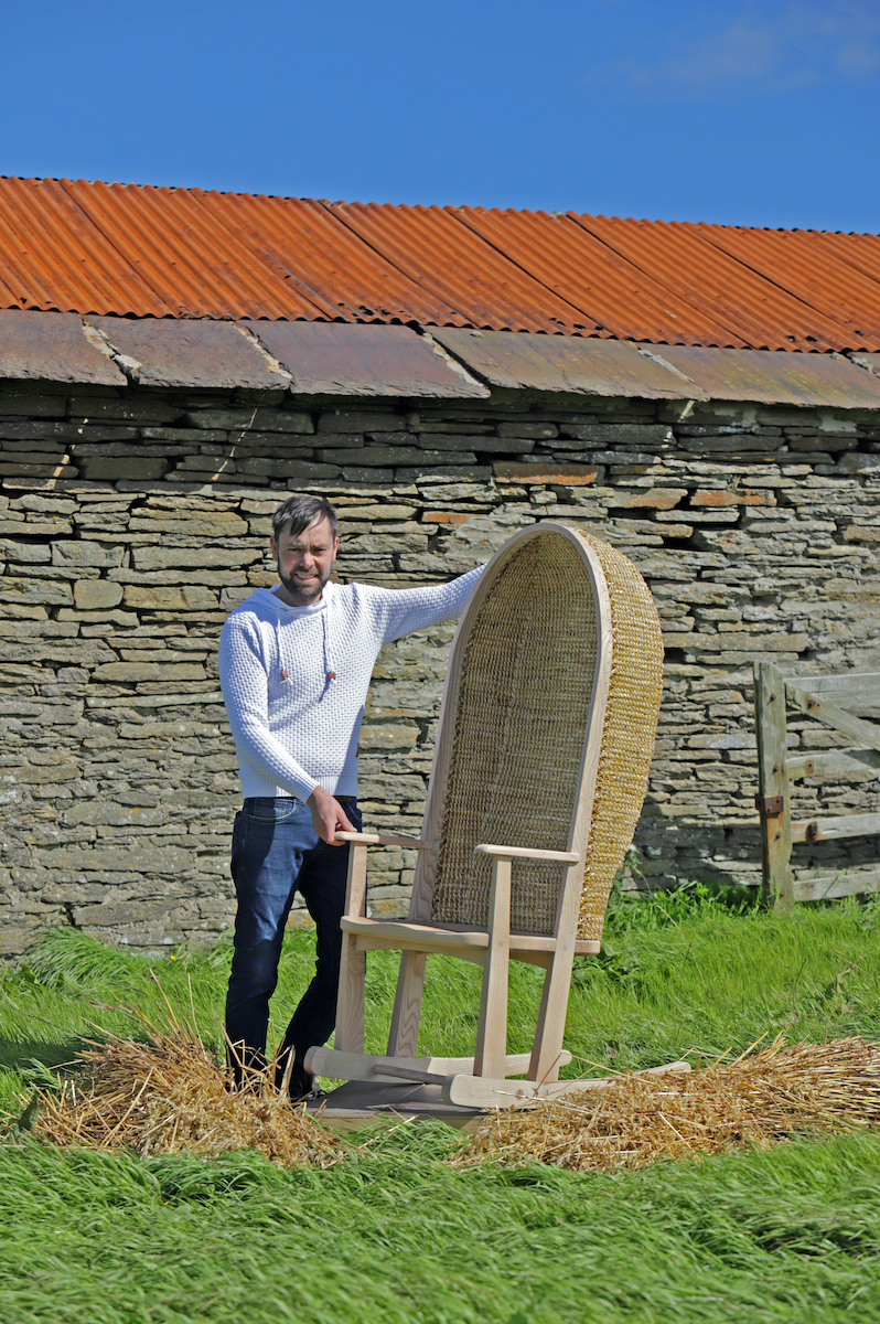 The Orkney Furniture Maker’s (Kevin Gauld) work is a combination of traditional and contemporary which is influenced by vernacular pieces of furniture made in Orkney, local materials and heritage techniques. For Ash Rise Kevin’s Skila Chair takes its name from the old Norse word for shelter. The loss of Ash trees to Ash die back reflects biodiversity losing their homes; their safe place, their place of shelter. Kevin linked this with the design of a hooded Orkney Chair; a vernacular chair design. Made from local materials and built with shelter in mind, this design provides a safe place for a crofter to sit on a stormy night.