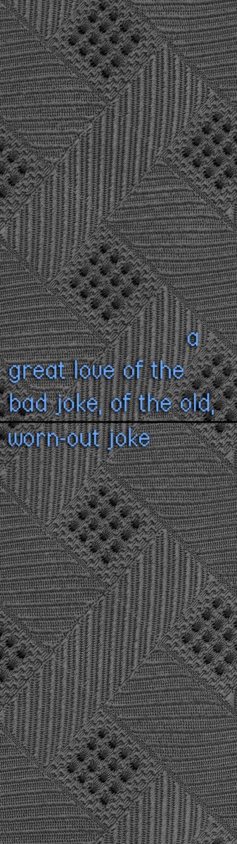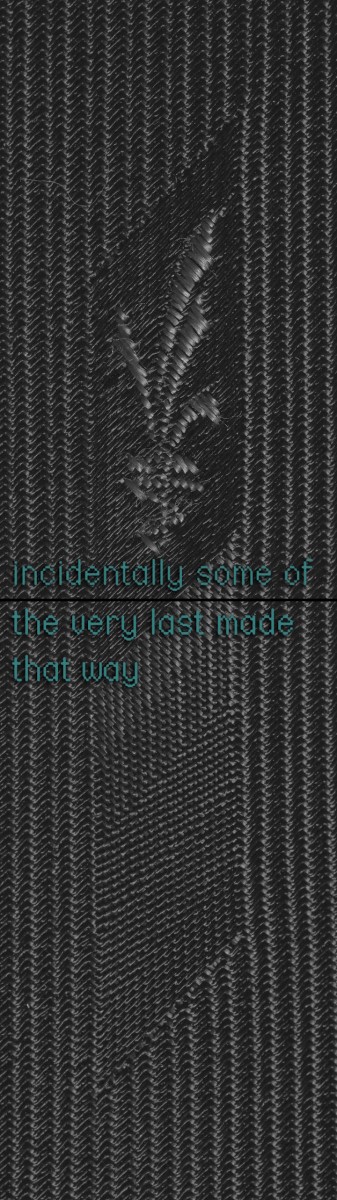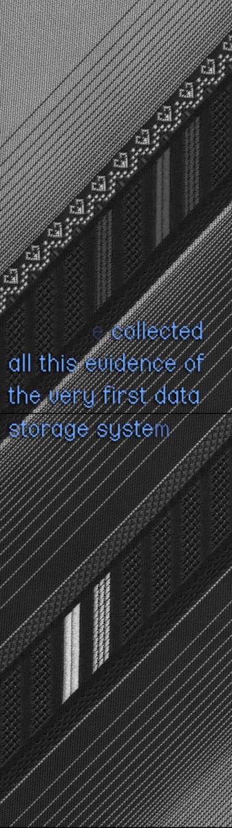 In FELT TIP, Price uses a collection of men’s neckties to explore the changing demographics of the office workforce in the period 1970–90. The ties connect this social change to interrelated histories of writing, weaving and data storage. The phallic symbolism of the tie also recalls the ink pen nib, another representation of those who traditionally held the power to write our history.