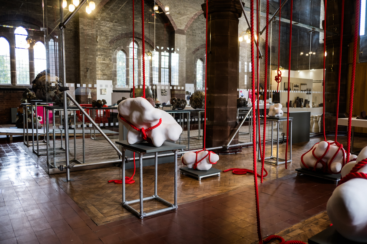 Fresh from the success of winning the UK’s highest award at the British Ceramics Biennial Mella Shaw returns to her home city to host the first solo exhibition of Sounding Line. Taking its title from the term used to describe a rope dropped from a boat to the seabed to measure depth at sea, Sounding Line is a large-scale ceramic installation that addresses the devastating effect of marine sonar on whales and other cetaceans. Mella Shaw is an artist and an environmental activist using themes of balance, tipping points, fragility and loss to raise awareness and inspire change. Its exactly five years since a devastating mass beaching of nearly a hundred dead whales across the Hebrides and West Coast of Scoltand and Ireland. The fact that so few people knew about this (herself included) inspired Mella to create this new body of work. In Sounding Line her focus is on the overuse of marine sonar which is having a devastating effect on particularly deep-diving whale species that rely on echolocation. This sonar is used by the military and by companies searching for new gas and oil reserves.