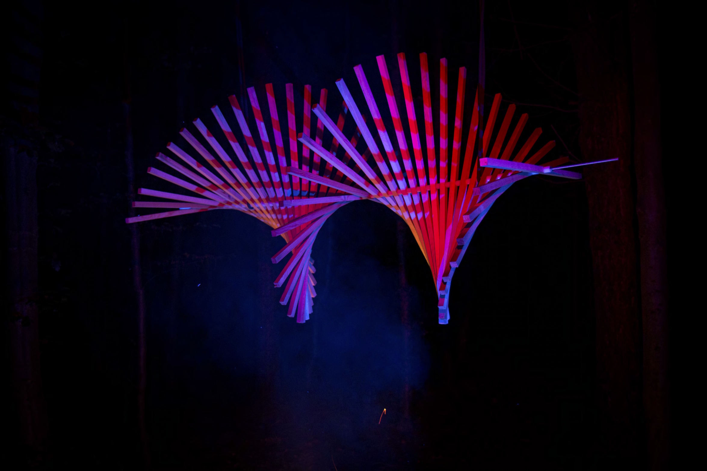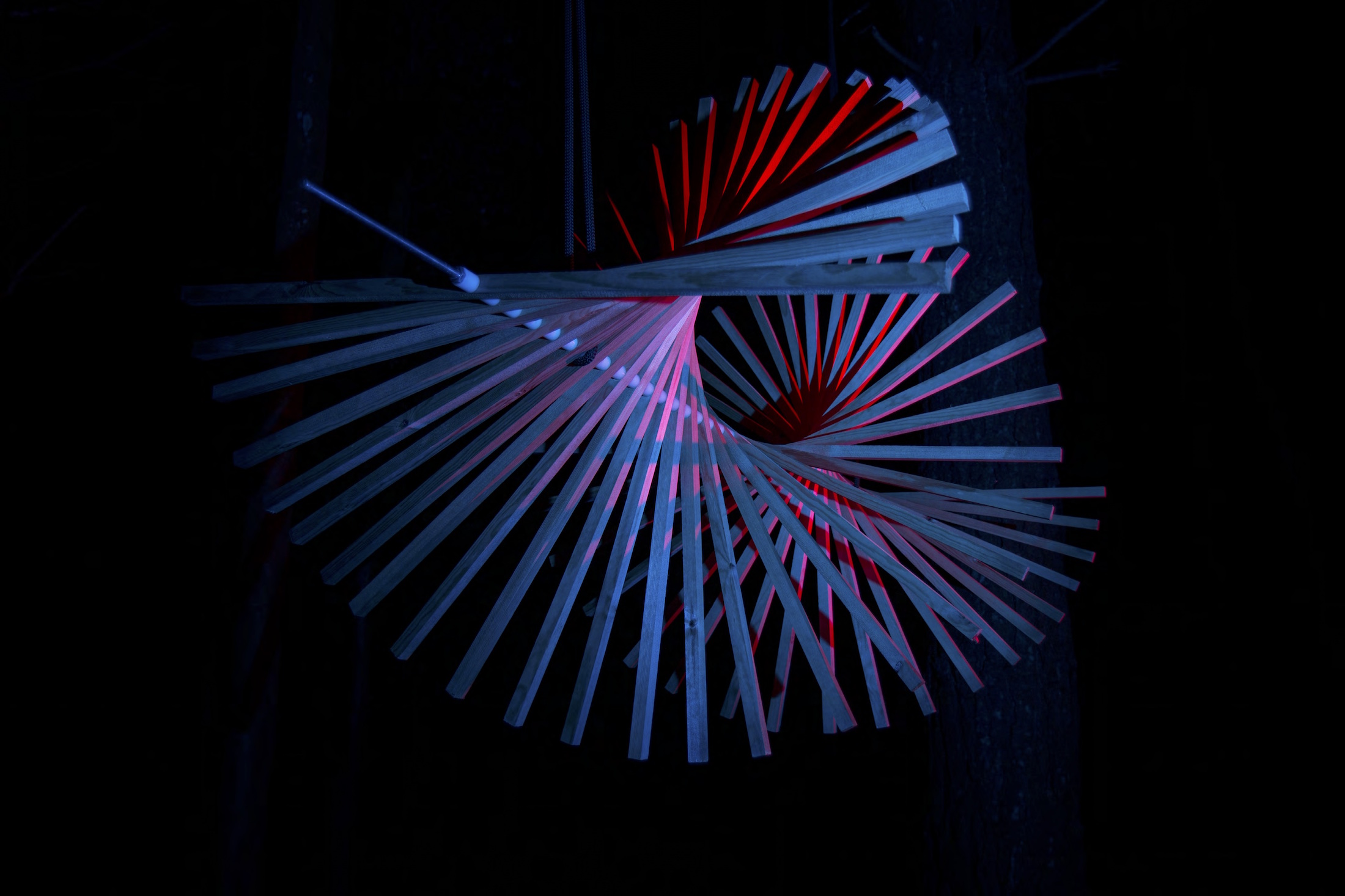 I have recently (July 2016) set up a small design studio called La Schmoove, based in Bristol. The focus is on space and creating beautiful, fun and engaging spaces through sculpture and design. The current work is between 2 and 3m in size and wood based. however I hope to scale up to small-scale architectural installations and pavillions. A huge amount of my process is experimentinng with materials and repeating units to develop unusual forms. I love simplicity. I am also aiming to target public spaces with community-enriching projects that transform a space, festivals with sculpture and lighting installations, and high end hotels and restaurants with bespoke pieces.– Henry Collins